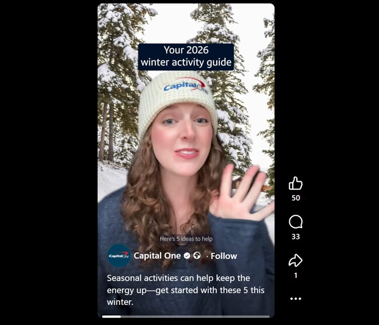 One of the most followed and influential finance brand pages on Facebook is Capital One, with around 4 million followers. The brand posts daily using a mix of financial education, community giving campaigns, and fun tips and finance hacks to build traction.
