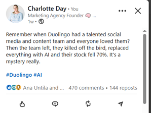 Contentworks Agency Director Charlotte is a LinkedIn thought leader with a humourous and unconventional take on content creation, finance, AI and sometimes cats!
