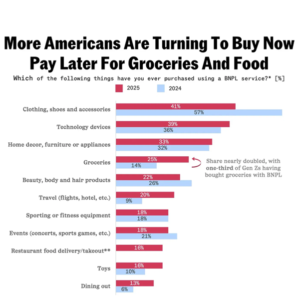 For those without foundational financial knowledge, BNPL can create a false sense of affordability, encouraging overspending and eroding savings. This is especially true for those using BNPL to fund day to day living expenses like groceries as opposed to a larger one-time purchase like a washing machine.