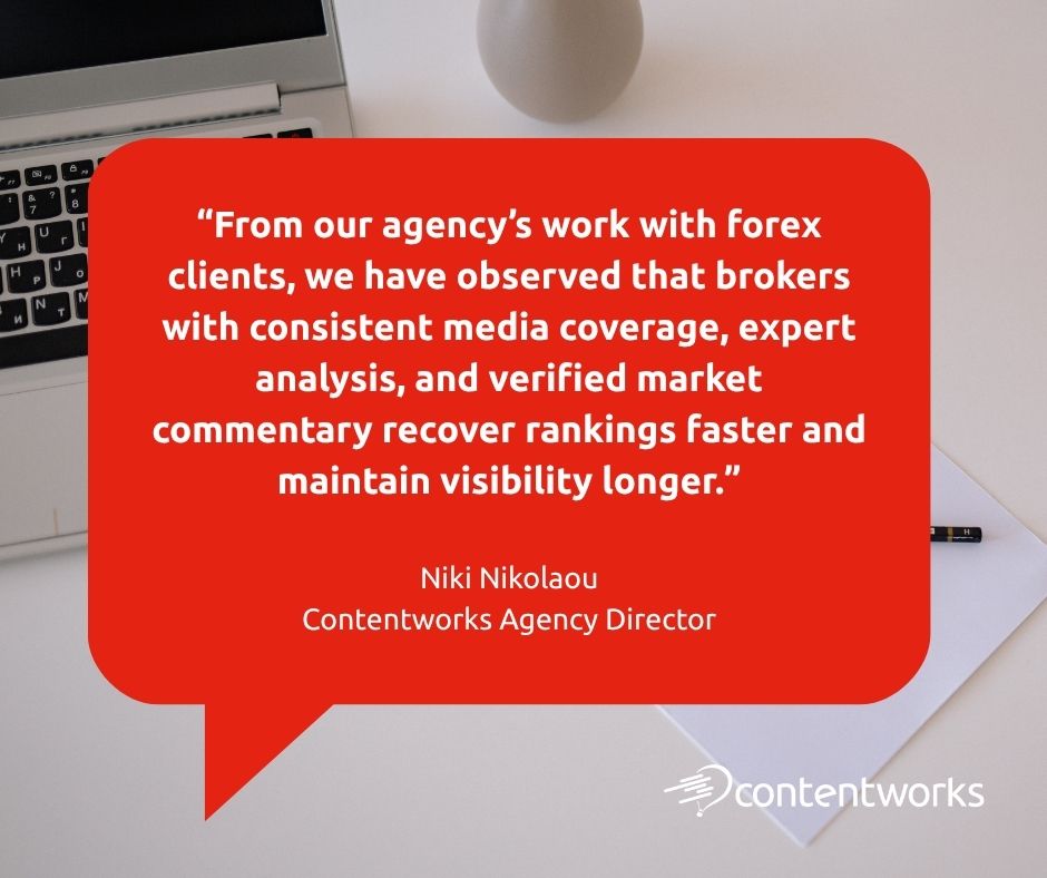 Generic beginner guides lost visibility while original research and expert insights gained rankings. Google is filtering out content that exists only because SEO demanded it. Forex brokers need to sit up and pay attention to this one.