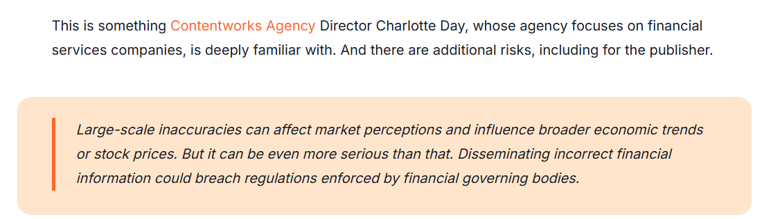 • Referencing recognised frameworks, standards or data. At Contentworks we closely follow key financial regulations and produce roundups each month.